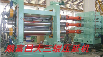選用先進的∮610X1800mm 四輥壓延機組,能夠完成壓延膠片、帶芯帆布雙面貼膠和帶芯整體包膠工藝過程,壓延精度、生產(chǎn)效率、自動化控制水平都能滿足生產(chǎn)高等級輸送帶的要求。供膠采用兩臺∮250銷釘冷喂料擠出機。
