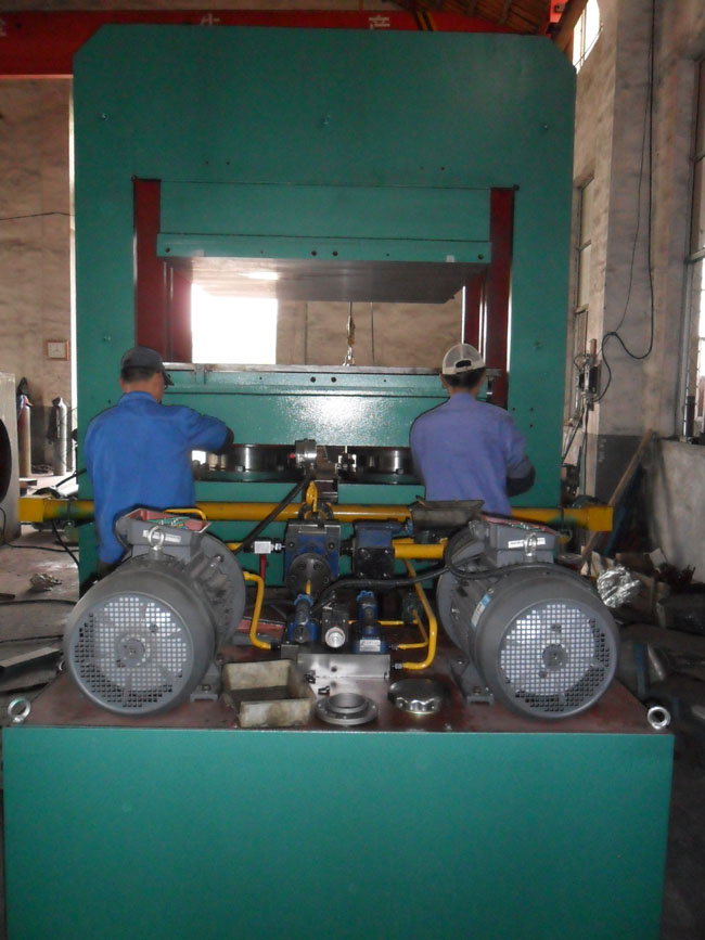適用于硫化各種橡膠塑料模型制品和非模型制品。平板硫化機(jī)柱塞在工作液壓力作用下上升,柱塞下降(即熱板開(kāi)啟)靠熱板、平臺(tái)及柱塞自重,驅(qū)使工作液流回儲(chǔ)油箱,達(dá)到下降(即開(kāi)啟)的目的。硫化機(jī)的油缸中放置有用耐油橡膠制成的密封圈,在硫化機(jī)工作中起密封作用。硫化機(jī)的組合油泵是本機(jī)工作的動(dòng)力源,它供給具有一定壓力的工作液。硫化機(jī)工作液經(jīng)控制閥進(jìn)入油缸,將操縱手柄撥到不同的位置,平板硫化機(jī)的柱塞即可上升或下降。